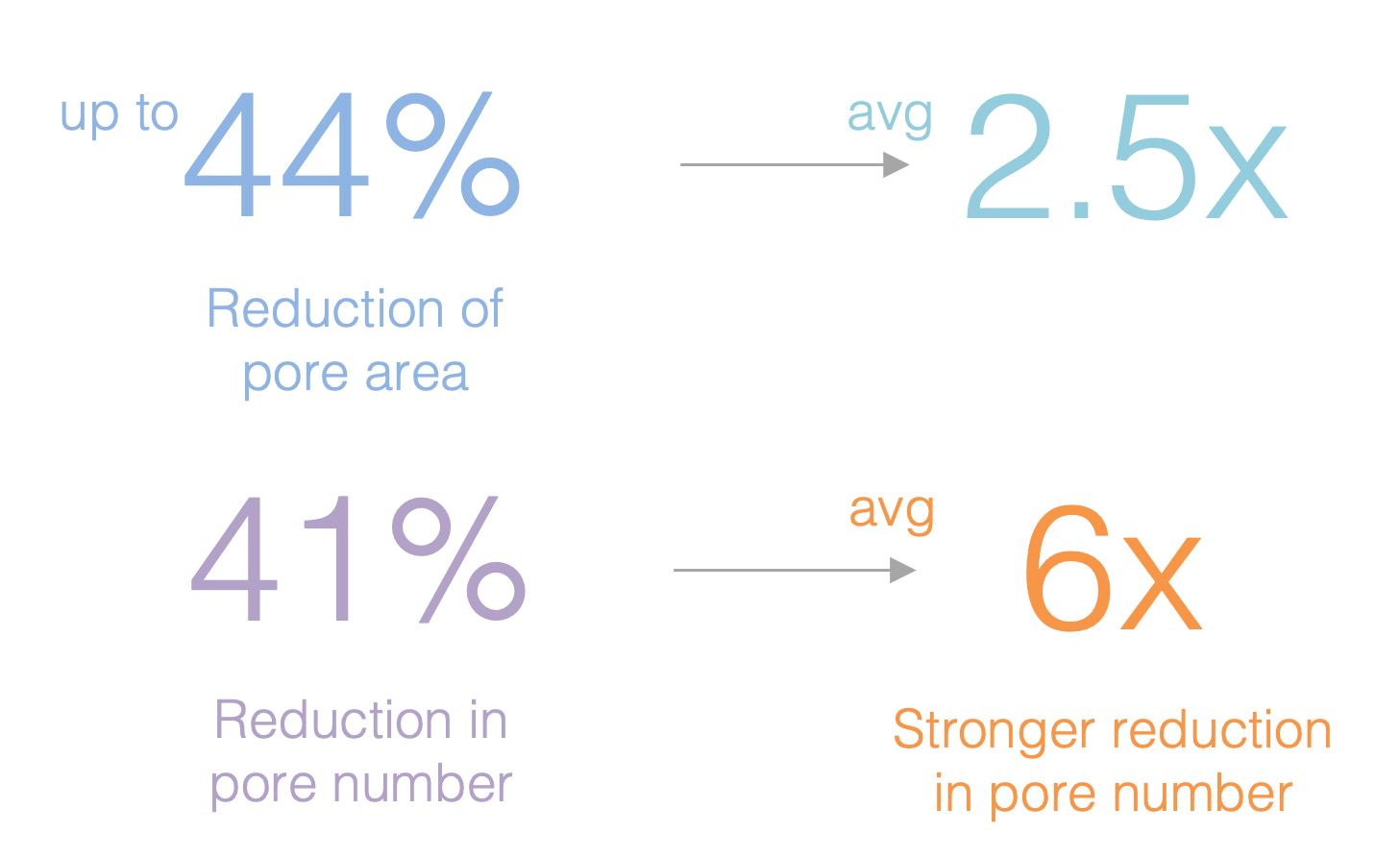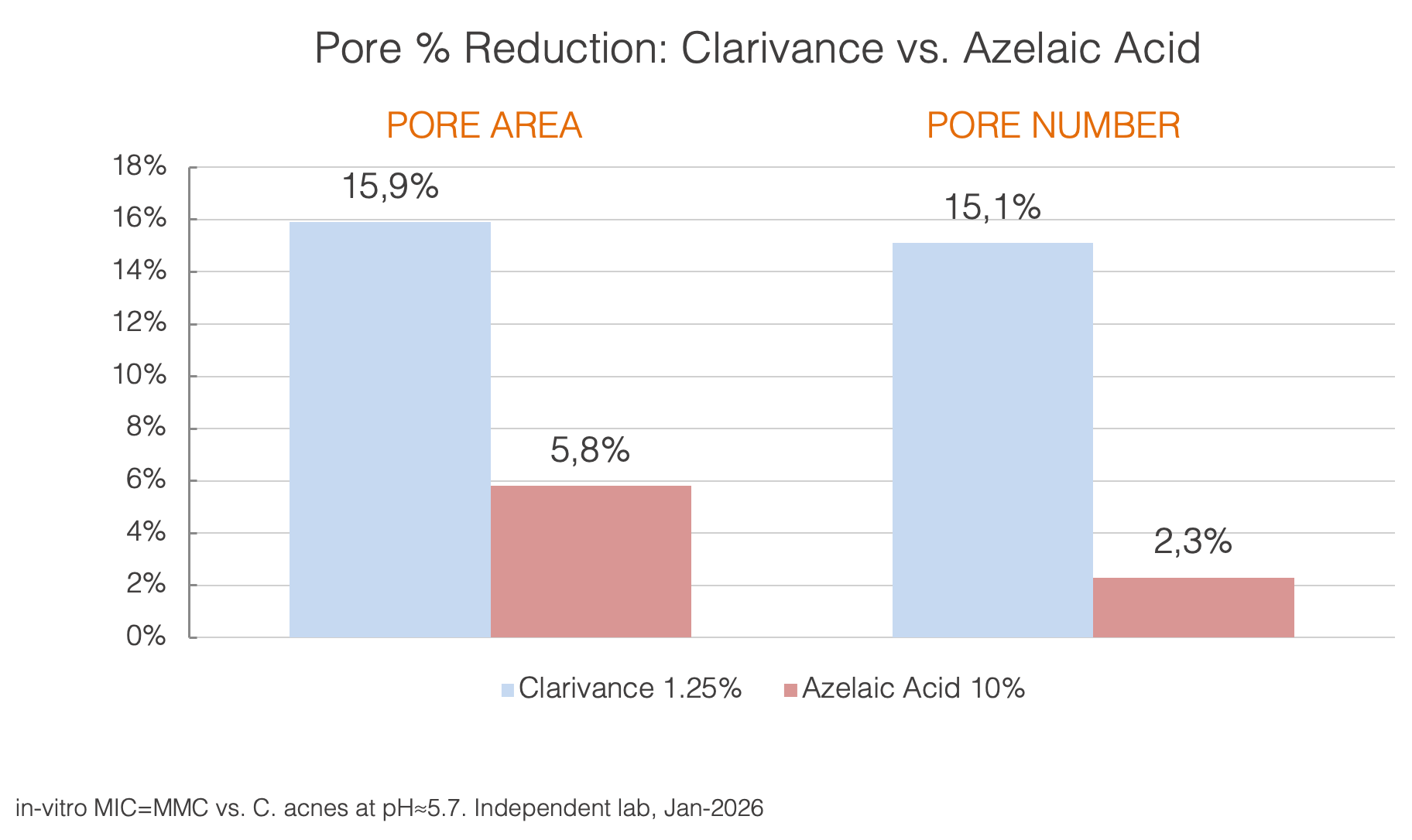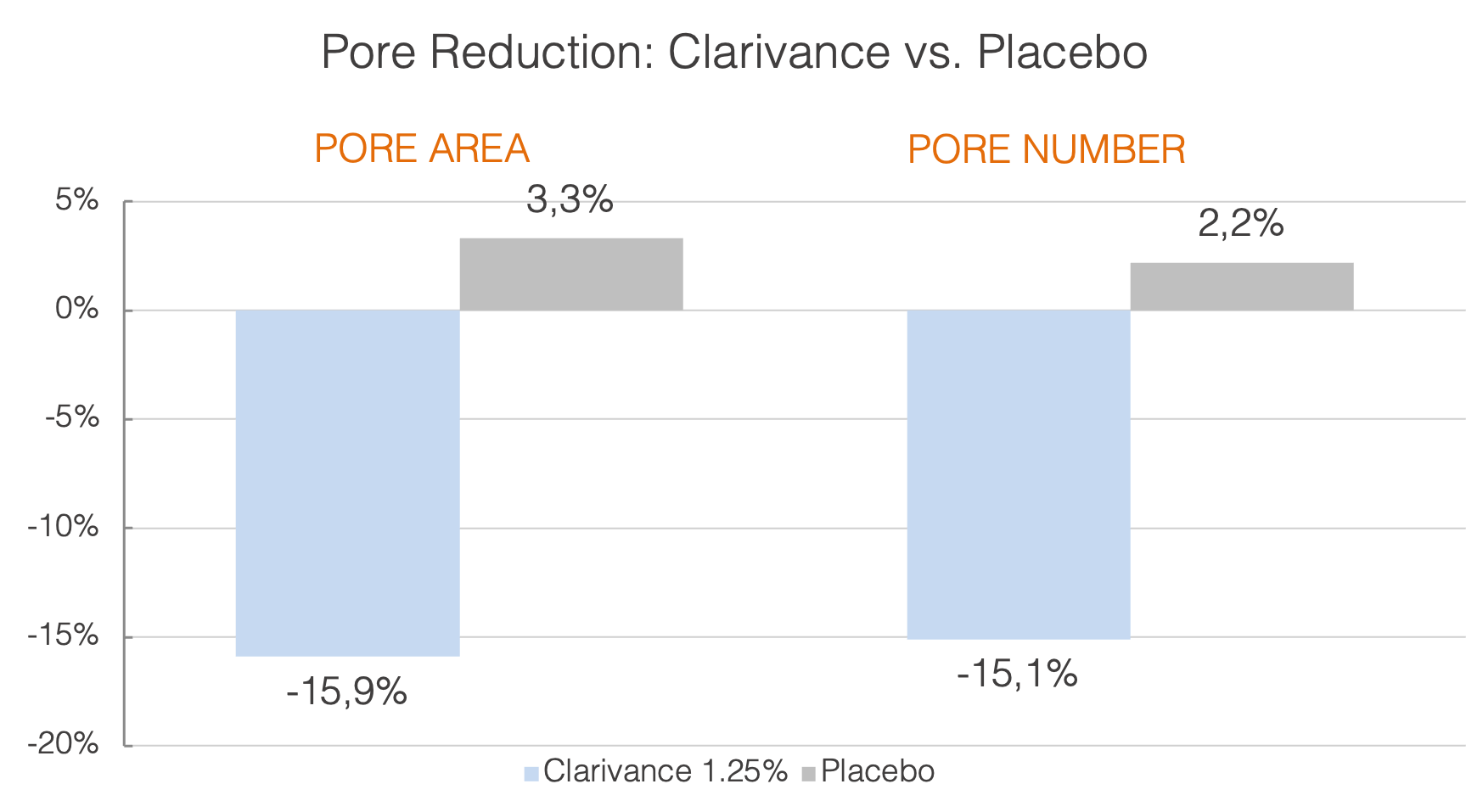 Clarivance™ significantly reduced both pore area up to 44% and pore number by up to 41% after 28 days.